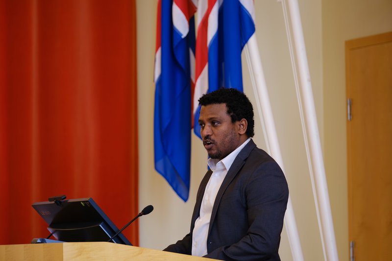 Silja Bára Ómarsdóttir rektor Háskóla Íslands, bauð gesti velkomna og Martin Eyjólfsson ráðuneytisstjóri hjá utanríkisráðuneytinu flutti opnunarerindi. Þá tók Irma Erlingsdóttir, prófessor og forstöðumaður jafnréttisskólans til máls og fjallaði um Endurheimt kynjajafnréttis á tímum bakslags og skautunar. Aðalerindi flutti Yeshiwas Degu Belay, fyrrum GRÓ GEST nemi og doktorsstyrkþegi sem stundar nám við Háskóla Íslands og Erasmus-háskólann í Rotterdam. Hann fjallaði um reynslu sína og í kjölfarið var spilað myndskeið þar sem innsýn var gefin í reynslu fleiri nemenda víða að úr heiminum. Að því loknu hófust pallborðsumræður. Pallborðinu stýrði Thomas Brorsen Smidt, námsstjóri GRÓ GEST og pallborðið skipuðu fyrrum nemendur GRÓ-GEST: Aarti Lila Ram, aðstoðarframkvæmdastjóri hjá Engro Foundation í Pakistan, Thelma Kaliu, einn stofnanda GenHub í Malaví, Mohamed Altamash Khan, yfirþjálfari hjá Men Against Violence & Abuse á Indlandi, og Yeshiwas Degu Belay. Fundinum lokaði Nína Björk Jónsdóttir, forstöðumaður GRÓ - þekkingarmiðstöðvar þróunarsamvinnu með nokkrum orðum og kynnti inn lokaræðu núverandi nemenda Saman, áfram!