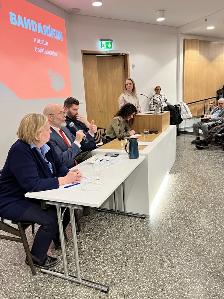 Alþjóðamálastofnun stóð fyrir opnum hádegisfundi í fyrirlestrasal Eddu þann 14. mars, sex vikum eftir að Donald Trump tók við embætti Bandaríkjaforseta og hóf umfangsmiklar breytingar á utanríkisstefnu Bandaríkjanna. Á fundinum var fjallað um áhrif þessara breytinga á varnir Íslands og alþjóðaviðskipti, auk þess sem ræddar voru væntingar um þróun bandarískrar utanríkisstefnu á næstu árum. Fundarstjórn var í höndum Elínar Margrétar Böðvarsdóttur, fréttakonu hjá SÝN en í pallborði sátu Baldur Þórhallsson, prófessor í stjórnmálafræði við Háskóla Íslands, Erlingur Erlingsson, hernaðarsagnfræðingur, Katrín Ólafsdóttir, dósent við viðskipta- og hagfræðideild Háskólans í Reykjavík, og Þórdís Kolbrún Reykfjörð Gylfadóttir, alþingismaður
