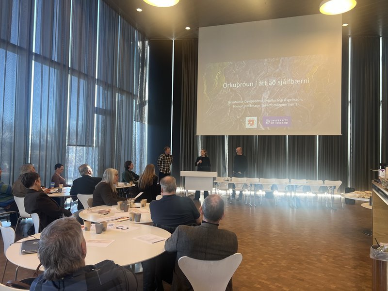 Jón Ásgeir Haukdal Þorvaldsson frá Umhverfis- og Orkustofnun fjallaði um núverandi stöðu og horfur í orkuskiptum á Íslandi. Farið var yfir markmið Íslands á sviði orkuskipta og rýnt í spár um hvort og hvernig við Ísland nær sínum markmiðum.